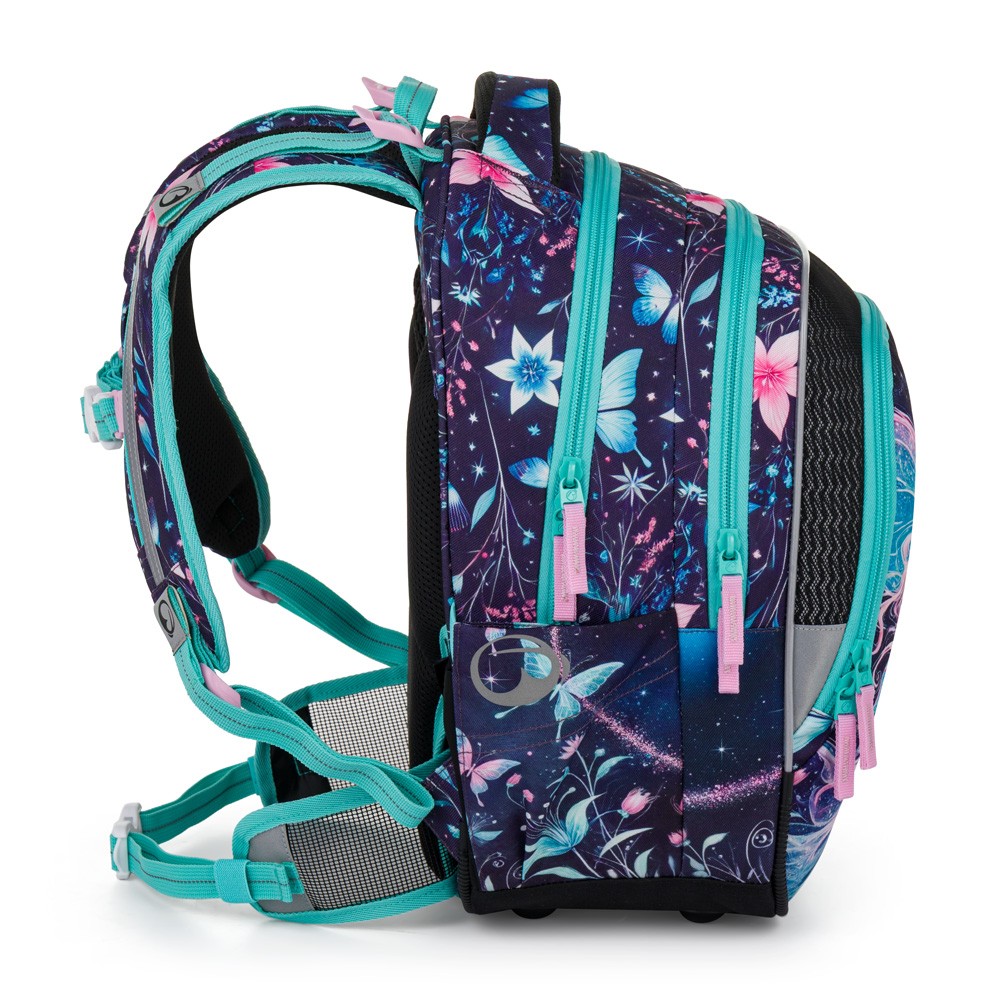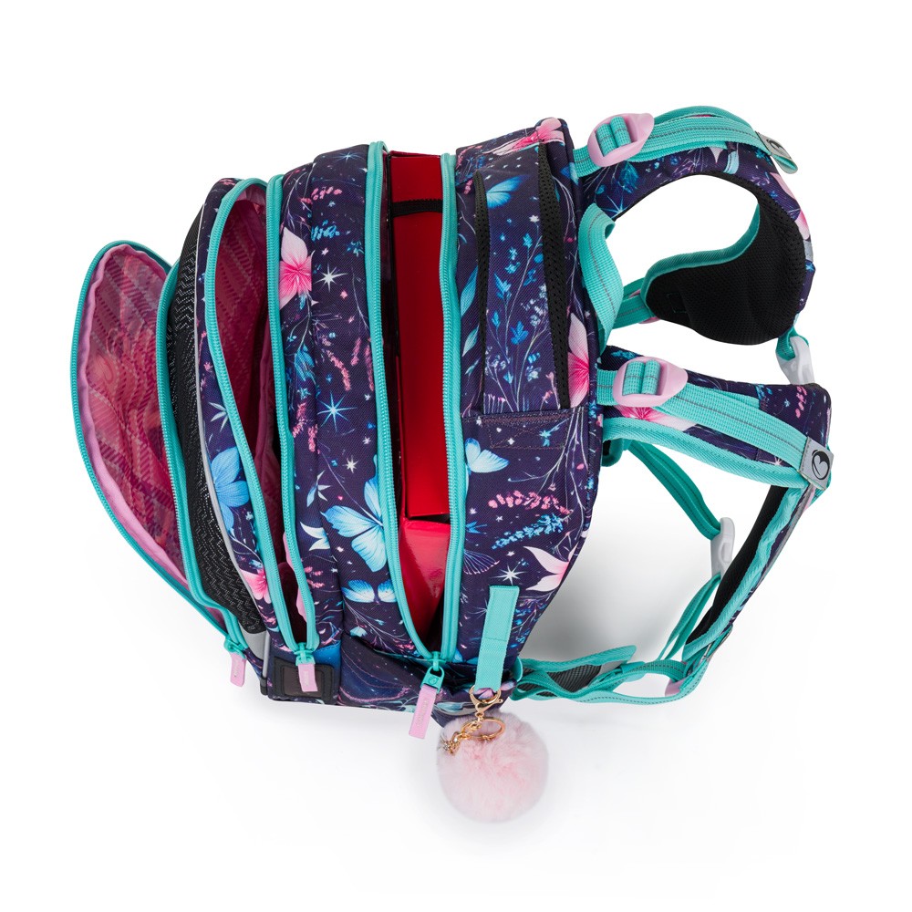 A hátizsák állítható és lekerekített vállpántokkal, rugalmas mellkasi övvel, eltávolítható könnyű derékpánttal és húzásálló, bevarrt vállpántokkal rendelkezik. Az ergonomikus hátrendszert a legapróbb részletekig finomítottuk az iskolások egészséges hátát szem előtt tartva.