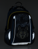 Részletes leírás: A főkamra méretei megfelelnek az A4-es méretnek.A belső részében, rejtve található a nagy hatékonyságú, de könnyű, ergonómiailag kiképzett alumínium váz, amely fiziológiailag alakítja a háti részt, ezzel is támogatja gyermeke gerincoszlopának és hátának fejlődését. Ennek köszönhetően a hátizsák kiválóan illeszkedik a gyermek hátához főleg a gerincéhez. Az anatómiai kialakítás lehetővé teszi a levegő áramlását, s ezáltal a gyermek hátának izzadását csökkenti. A középső kamra ketté van választva a jobb áttekintés érdekében. Itt elférnek a füzetboxok is. Az első kamrában találhatjuk az iratrendezőt, mely alkalmas, igazolvány, ebédjegy, bérlet, és apróbb tárgyak elhelyezésére. Itt találhatunk egy lekapcsolható kulcstartót -karabínert- is. Szemben egy hálós zsebet találhatunk ami cipzárral zárható. Az elülső részen található rejtett zsebszéle fényvisszaverő elemmel van díszítve. Itt tolltartót, naplót...tárolhatunk. A vállpántok puhák, kényelmesek és állítható a magasságuk. A hátizsák rögzíthető mellkasi heveder segítségével, de ez nem része a hátizsáknak. Az iskolatáskán több fényvisszaverő elemet helyeztünk el a tanuló láthatóságának maximális biztosítására. Főleg az elülső részén, az oldalán, és a hevedereken. A hátizsák gyártásához felhasznált anyagok és fényvisszaverő elemek megfelelnek az EU biztonsági normáinak. A táska alsó része vízálló anyagból készül, mosható. A stabil tartólábak megakadályozzák a táska aljának sérülését ill. a táska felborulását.