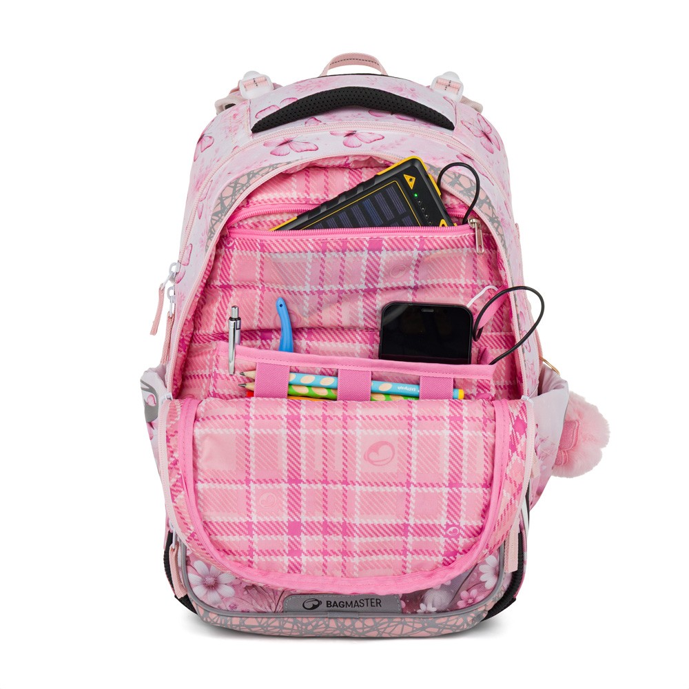 A hátizsák állítható és lekerekített vállpántokkal, rugalmas mellkasi övvel, eltávolítható könnyű csípőövvel és puha vállpántokkal rendelkezik. Az ergonomikus hátrendszert a legapróbb részletekig finomítottuk az iskolások egészséges hátát szem előtt tartva.