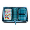 A két nyitható szárnyon 32 rugalmas gumibetét található zsírkréták, tollak, filctollak, radírok, iránytűk és egyebek számára.