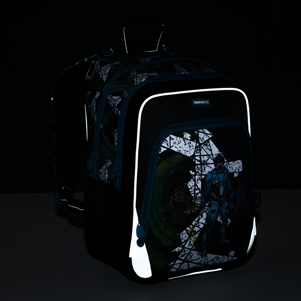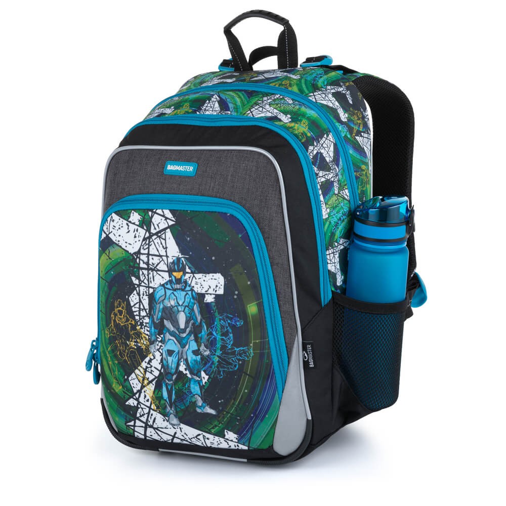 1.-3.třída ZŠ. Tříkomorový školní batoh pro kluky do první třídy s vesmírným vojákem. Polstrovaný zádový systém se zdravotním posudkem. Prostorný batoh s organizérem. Klip na klíče. Polstrované dno. Plastové nožky. Reflexní prvky.