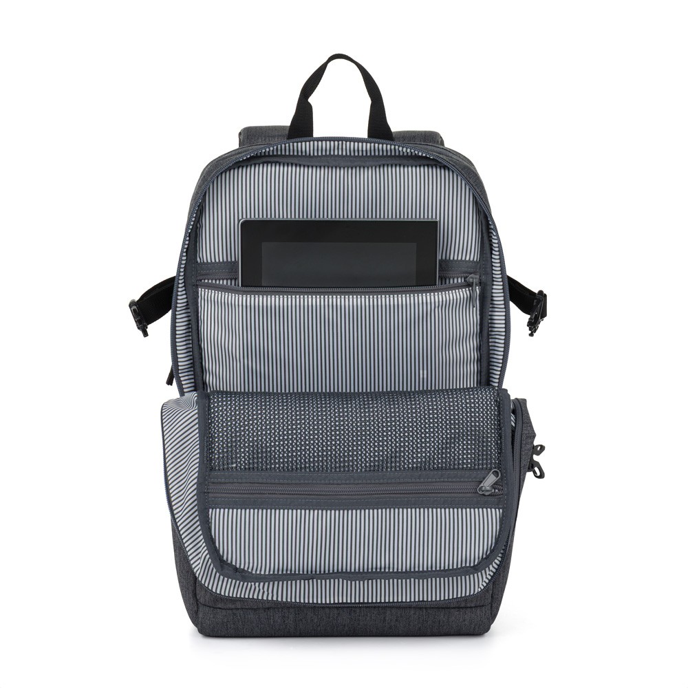 Stílusos hátizsák, amely veled együtt megállja a helyét az iskolában, a munkában és egy mozgalmas hétvégén is. Belül elegendő helyet kínál laptop, dokumentumok és minden apróság számára, amit kéznél szeretnél tartani. Praktikus palacktartó zsebek és átgondolt rekeszek gondoskodnak arról, hogy mindig rend legyen a hátizsákban.